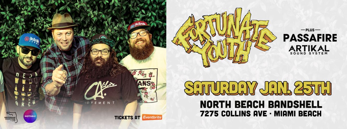 We are very excited to welcome Fortunate Youth to Miami alongside Passafire and Florida's own Artikal Sound System!!!