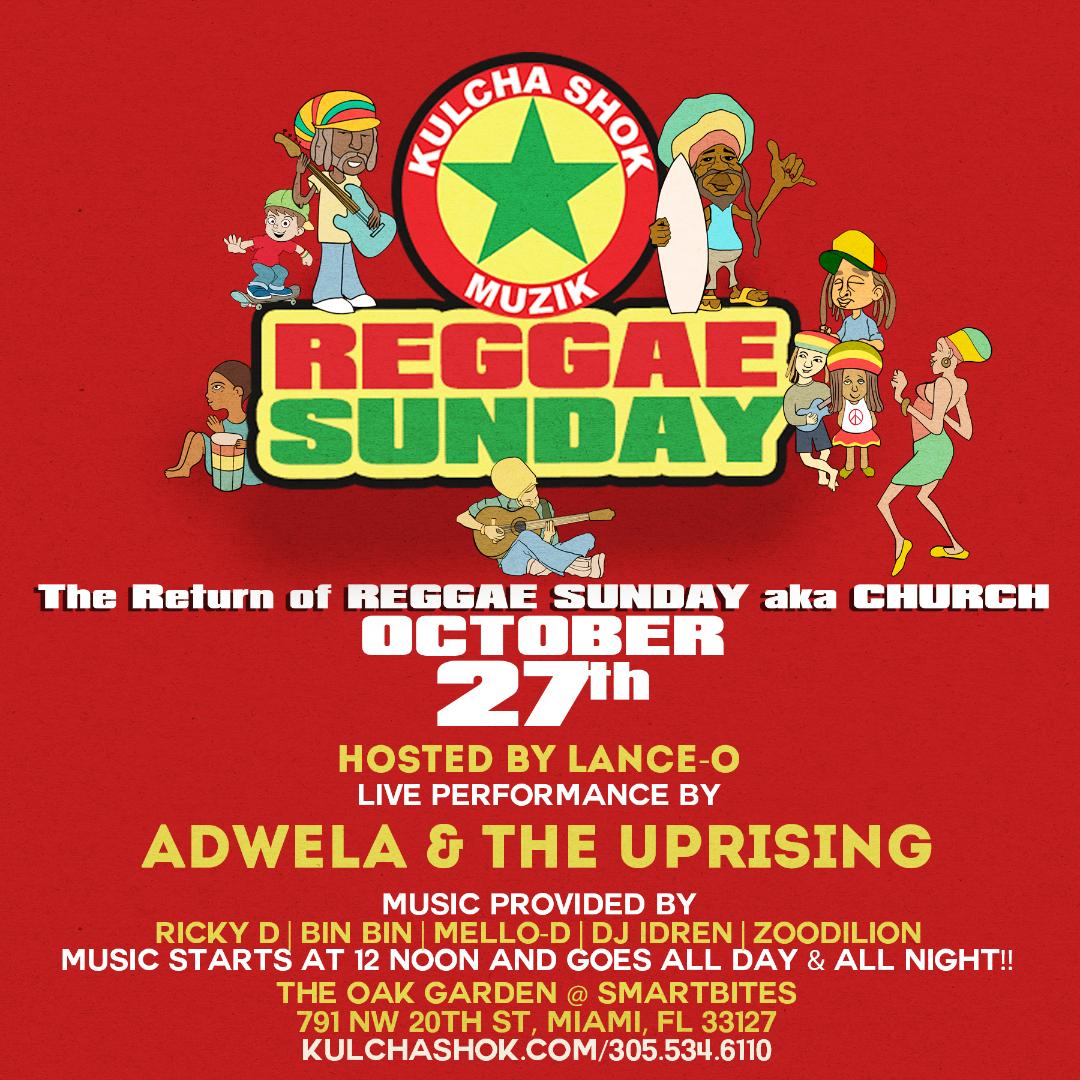 Sunday, October 27th, 2019 Kulcha Shok is very excited to continue it's new and improved Reggae Sundays A.K.A. Church at our new amazing outdoor venue : The Oak Garden @ Smartbites. This week we welcome Adwela and the Uprising, and as always The Kulcha Shok Crew rocking you in between sets.