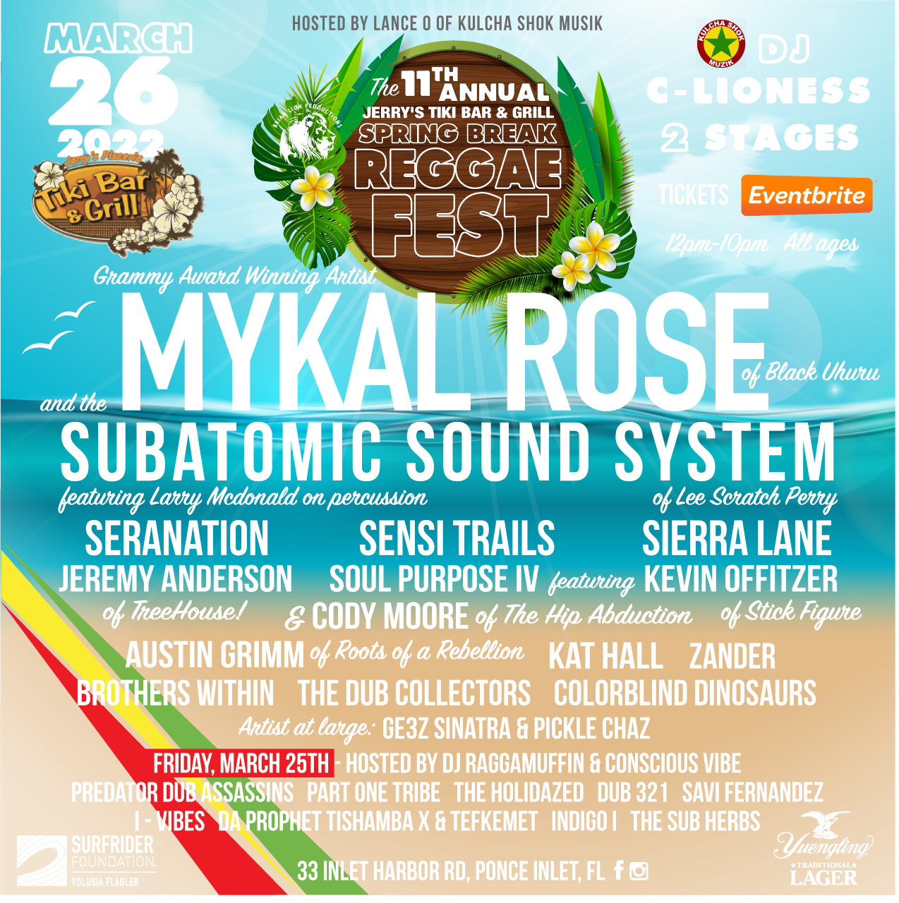 Artists include: Mykal Rose, Subatomic Sound System, Seranation, Sensi Trails & more.