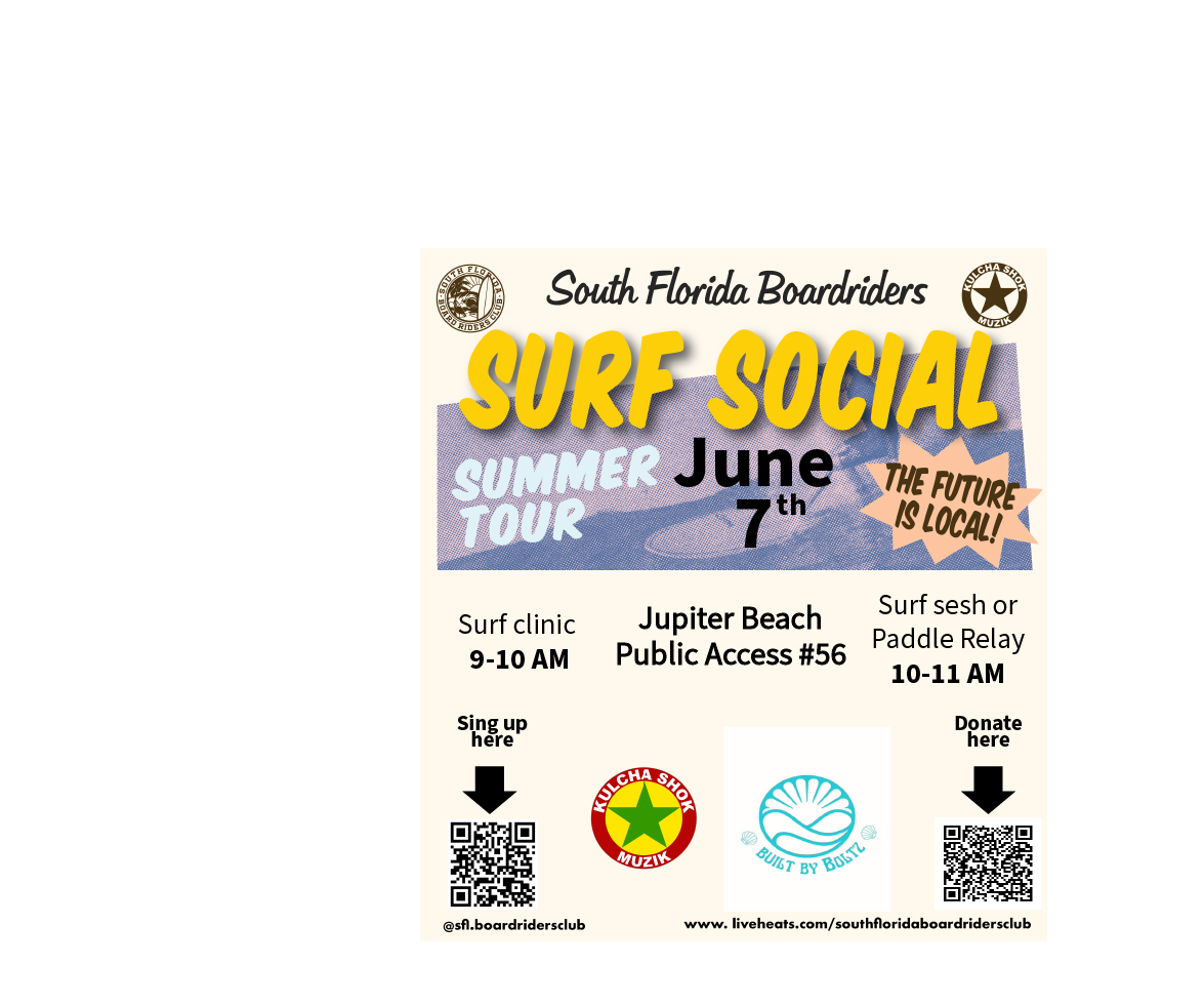 Kulcha Shok Presents Surf Social June 7 SFL Boardriders Club is having it's 2nd solo clinic with Built By Boltz Land led drills & workout. Paddle race or surf session 9-11am it is free we do ask for donations and sign as well see QR codes on flyer. here's a link to sign up, & […]